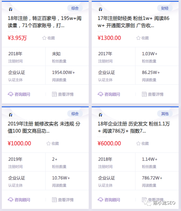 百家号:个人注册无能注册公司预计需要成立公司+代理记账的费用 出动有钱能使鬼推磨功能,可以直接购买企业号,价格1千到几万